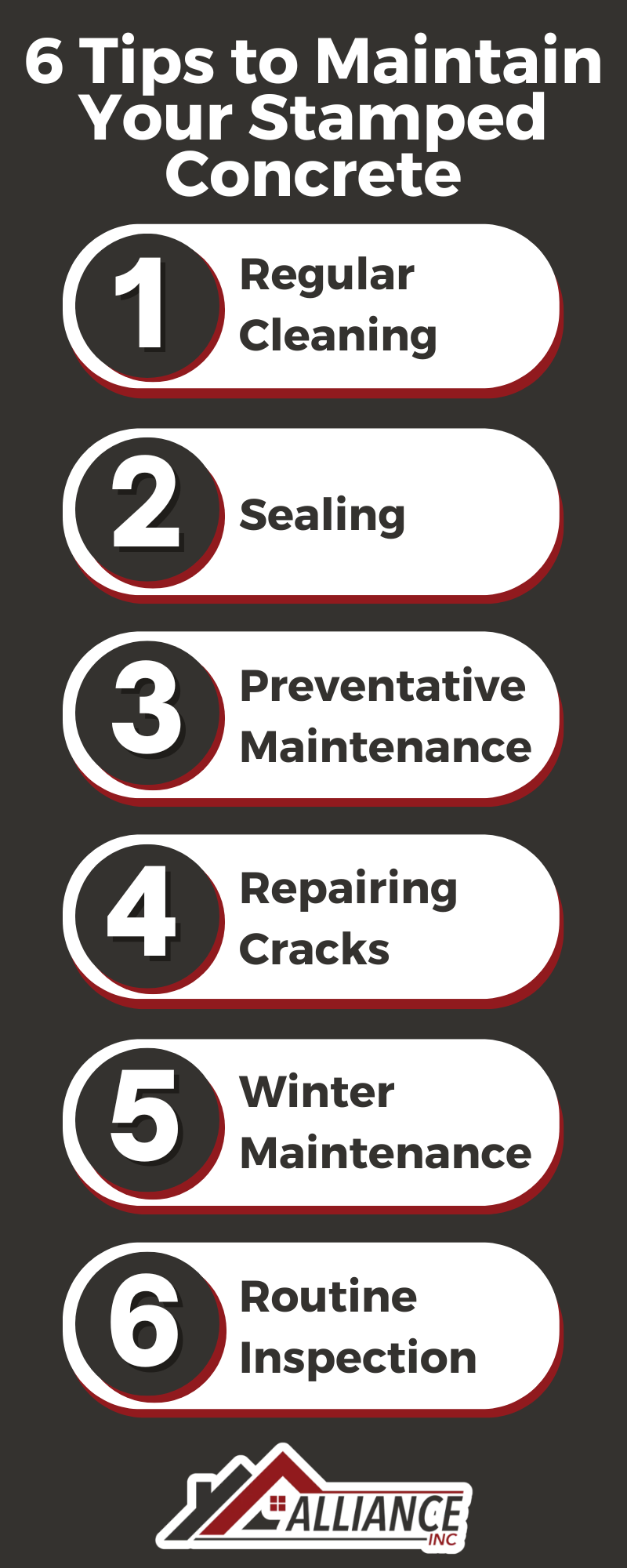 Are you ready to elevate your property with the stunning appeal of stamped concrete? At Alliance Masonry, we specialize in concrete finishing services that add serious wow factor to any outdoor space. Whether you’re sprucing up your home’s patio or enhancing the curb appeal, stamped concrete offers a custom, durable solution that will stand the test of time. In this guide, we’ll explore essential tips on how to maintain your stamped concrete and keep it looking its best for years to come.